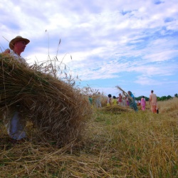 A nyári hónapokban folyamatosan „zajlik az élet” Új-Vraja-dhamában: egyik fesztivál következik a másik után. Július elején learattuk Radha-Syama első idei gabonáját. Ezt minden évben egy kisebb fesztivállal ünnepeljük meg: Kis Radha-Syama és Govardhana Lála a bhakták kíséretében kimennek a földekre, hogy Ők is végignézzék egy búzatábla learatását. A bhakták apraja-nagyja is részt vesz az aratásban, s ott helyben kicsépelnek egy adag gabonát. Lisztet őrölnek belőle, a szakácsok pedig földbe vájt tűzhelyeken készítenek különböző fogásokat az Uraknak: csapátit sütnek az első lisztből, szabdzsikat és sós csemegéket főznek a helyi zöldségekből.
